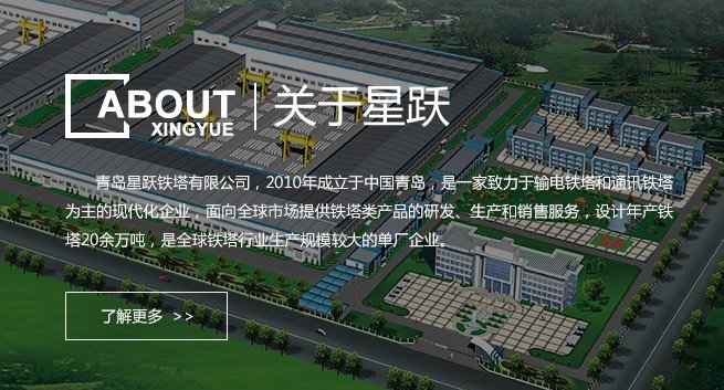 放眼全球鐵塔行業(yè),星躍鐵塔從廠區(qū)建設(shè)到裝備引進(jìn),均以非凡實(shí)力,樹立起世界鐵塔行業(yè)的現(xiàn)代化企業(yè)典范。